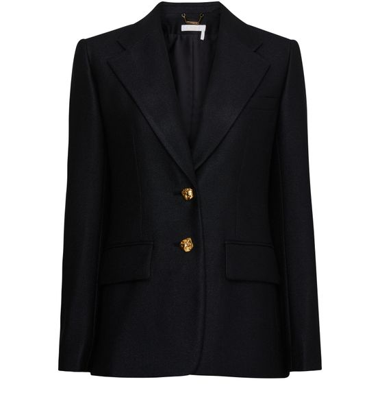 La veste Chloe est un modèle simple boutonnage avec 2 boutons et une étiquette avec le logo à l’arrière. Elle a des manches longues et deux poches avant avec des poches à rabat. Les finitions dorées ajoutent une touche d'élégance, et le col cranté complète son design classique.