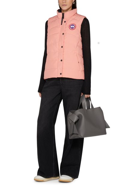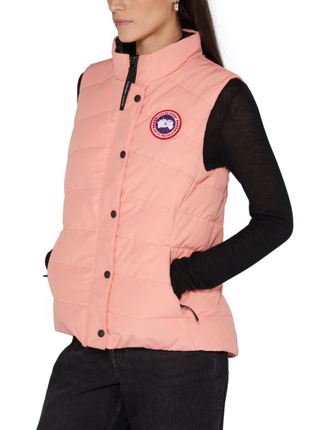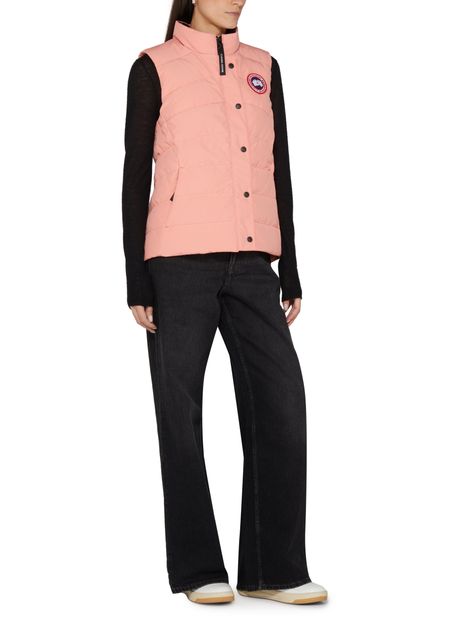 La veste Freestyle de Canada Goose est une pièce conçue pour résister aux températures de 5°C à –5°C. Elle présente une coupe slim, un col montant, et est sans manches. Elle dispose d'une fermeture à glissière dissimulée et de boutons-pression, de poches latérales et d'une poche intérieure. Le logo de la marque est situé sur la poitrine.