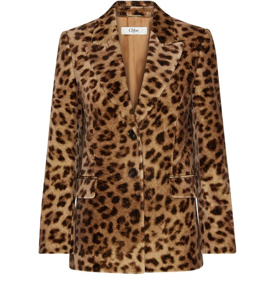 La veste imprimé léopard de Chloé se distingue par son audacieuse allure animalier. Avec son col cranté et sa coupe longue, elle offre une silhouette élégante. Les deux poches avant à rabat ajoutent une touche pratique, tandis que les manches longues soulignent le style contemporain et raffiné de cette pièce incontournable.