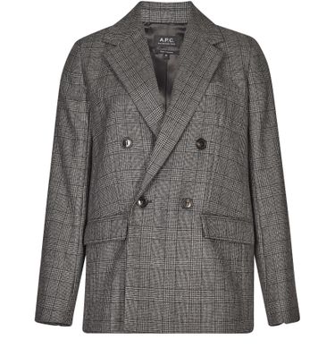 Description : Veste avec poches, fermeture croisée boutonnée, col tailleur cranté, quatre boutons à l'avant, motif Prince-de-Galles, coupe droite, matière chaude.