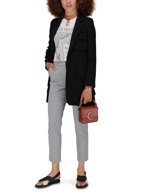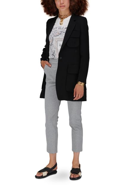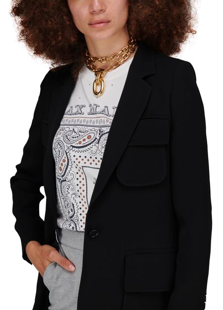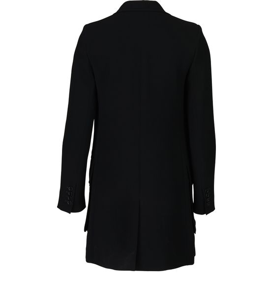 • Description : Veste simple boutonnage, col tailleur cranté, encolure en V, manches longues, deux grandes poches avant à rabat, poches poitrine à rabat, coupe droite.
