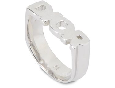 Cette bague en argent brillant possède un design simple mais iconique et plein d’attitude. Le logo « DIOR » instantanément reconnaissable se dessine en lettres capitales sur votre doigt. Elle se superpose à plusieurs bagues pour un look affirmé.
