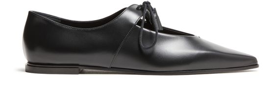 Découvrez les ballerines lacées Max Mara, conçues en cuir lisse. Ces chaussures élégantes présentent un bout pointu et un laçage avec bride pour un maintien parfait. La semelle intérieure à logo ajoute une touche d'élégance, idéale pour un look sophistiqué.