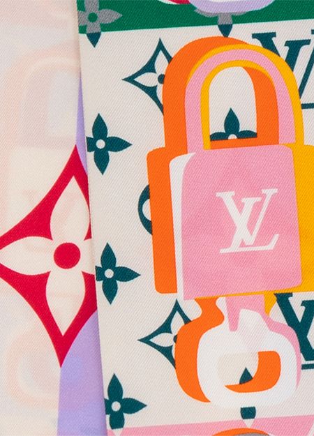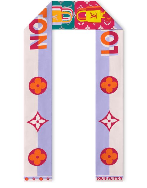 Ce bandeau LV Unlocked réinterprète un motif caractéristique de la Maison dans une version estivale. Il se compose de cadenas Louis Vuitton emblématiques placés sur une toile de fond à imprimé Monogram contrasté. L'autre côté est rehaussé de fleurs de Monogram et d'une grande signature Louis Vuitton. Cette pièce est assez longue pour se porter autour du cou ou sur la tête.