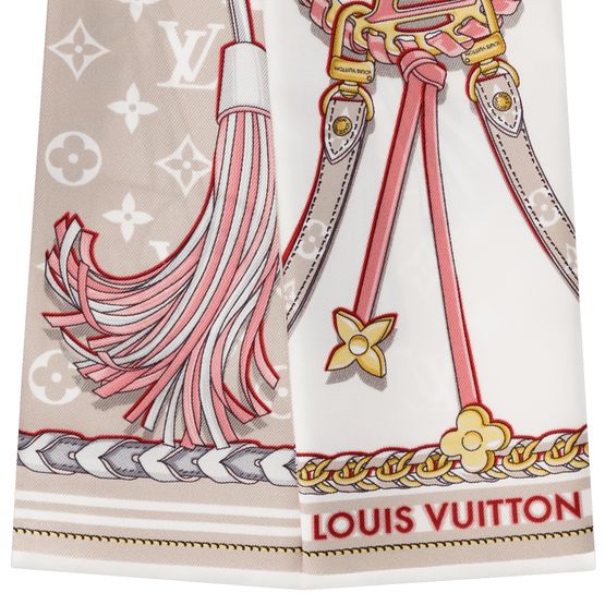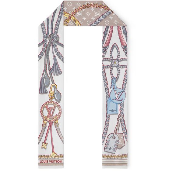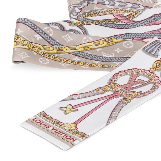 Confectionné en pure soie somptueuse, ce bandeau Mix and Straps est rehaussé d'un nouvel imprimé raffiné. Tirant son inspiration des célèbres modèles de maroquinerie de la Maison, il met en scène des bandoulières, des chaînes et des pampilles sur un fond composé du motif Monogram emblématique. Une bordure contrastée et une signature Louis Vuitton ponctuent remarquablement ce modèle.