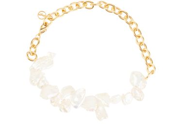 Jouant sur le contraste entre une chaîne en argent plaqué or et des perles d'eau douce, le bijou de cheville Two Faced Shelley signé Anissa Kermiche respire la féminité.