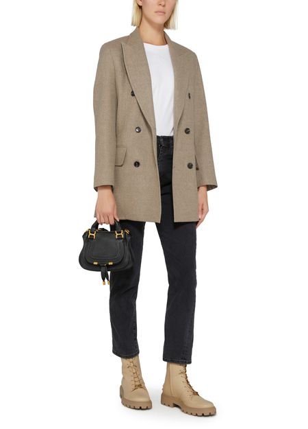 Le blazer Belinda de Max Mara en cachemire et laine offre une matière chinée de qualité. Sa coupe ajustée met en valeur la silhouette, avec un col tailleur en pique et des manches longues élégantes. Les poches à rabat passepoilées ajoutent une touche sophistiquée, tandis que la fermeture à double boutonnage complète le look chic.