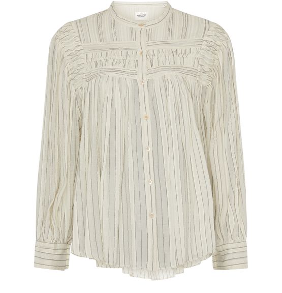 La blouse Plalia d'Etoile Isabel Marant incarne la légèreté avec ses détails délicats et son allure fluide. Ses manches légèrement bouffantes et son décolleté subtil offrent une touche féminine. Parfaite pour les journées ensoleillées, elle se marie aisément avec un jean ou une jupe, ajoutant une note de chic décontracté.