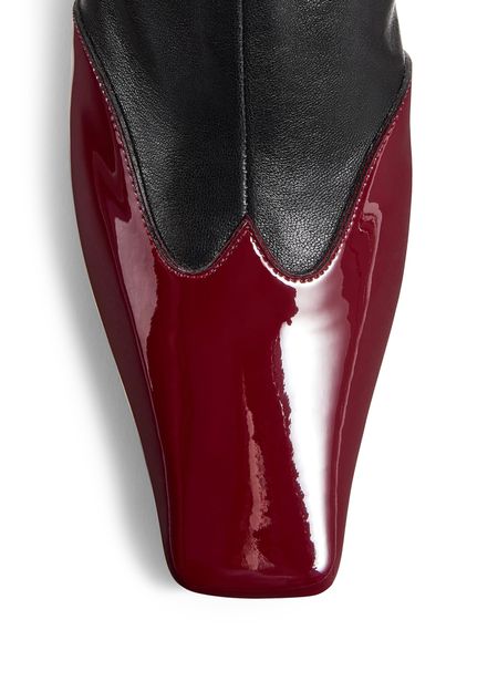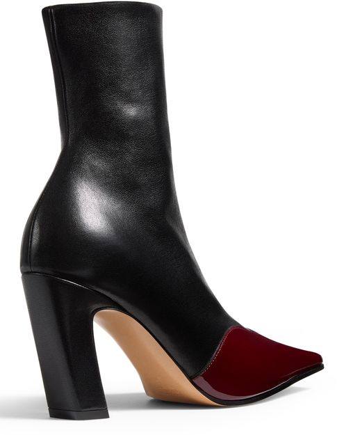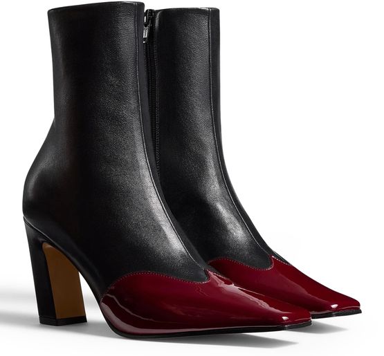 • Description : Bottes & bottines, cuir lisse, cuir vernis, talon bloc, talons hauts, closed, bout pointu, semelle extérieure en cuir, zip sur le côté, piqûre visible.