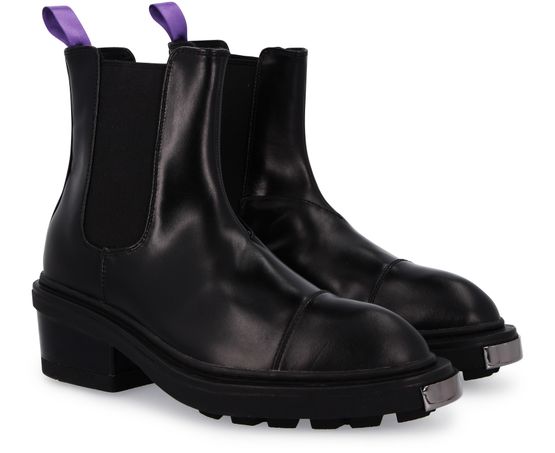 Résistantes et confortables, ces bottines Nikita signées Eytys sont un modèle imposant se caractérisant par une épaisse semelle crantée, un talon bloc et un bout rond à plaque argentée.