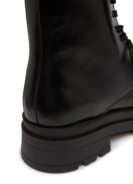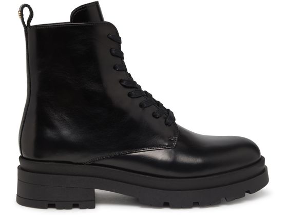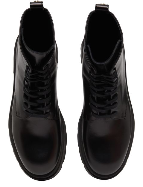 • Description : Bottines à lacets, cuir lisse, semelle crantée, talon plat, monogramme de la Maison, passant en cuir à l’arrière pour un enfilage facile.