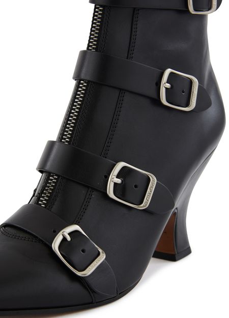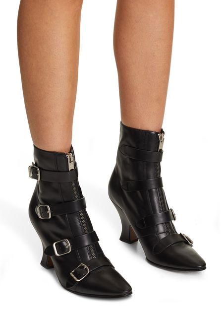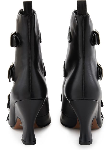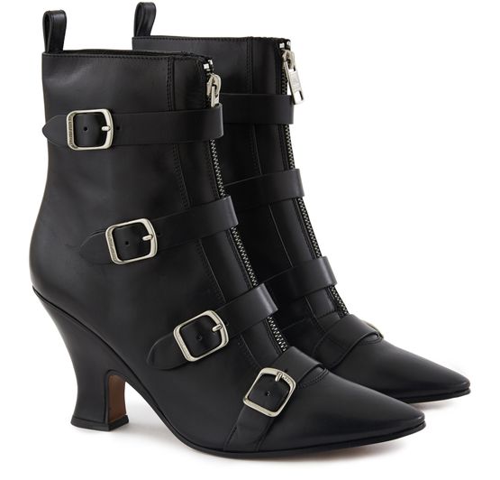 Dans une ligne particulièrement audacieuse, les bottines St Marks dessinées par Marc Jacobs prennent des accents de bottines victoriennes, dont les lacets se modernisent en lanières à boucle.