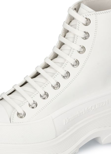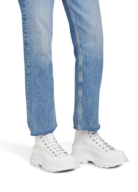Découvrez les bottines Tread Slick d'Alexander McQueen. Ces bottines présentent des coutures apparentes, un logo contrastant et une tige haute. Le laçage ton-sur-ton ajoute une touche de sophistication, tandis que la semelle extérieure épaisse offre un confort optimal. Parfaites pour un look urbain et tendance.