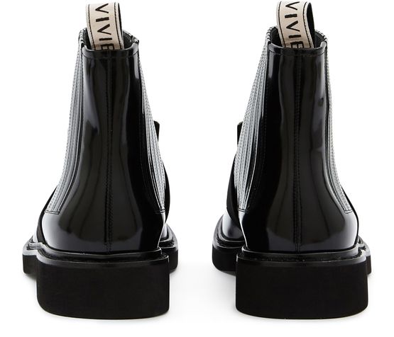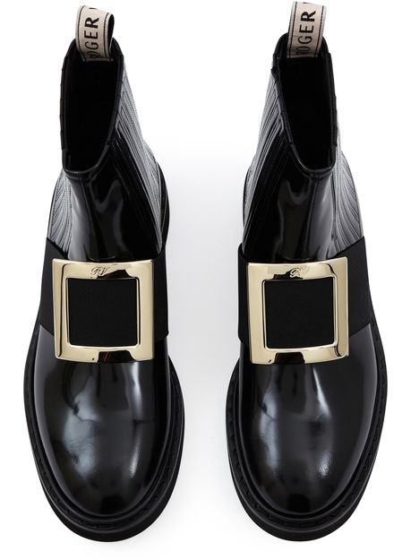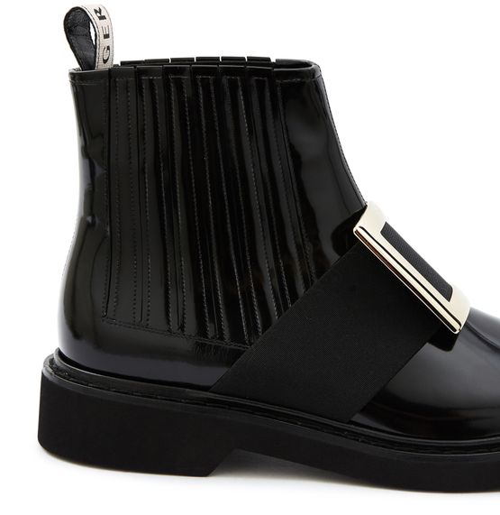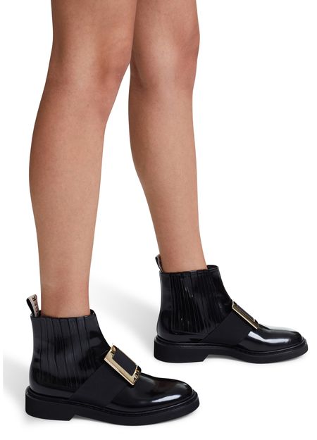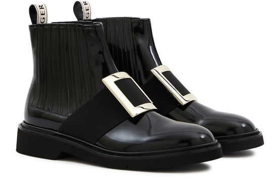 Les bottines Viv Rangers de Roger Vivier donnent de l'allure à vos jambes. Sa matière vernie se marie à ravir avec sa grosse boucle sur le cou du pied.