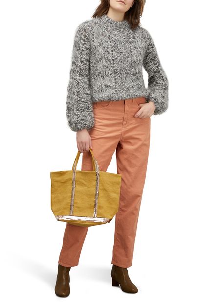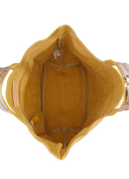Déclinaison la plus estivale de l'iconique Cabas Vanessa Bruno lancé en 1998, ce modèle en lin, versatile et léger, est le compagnon idéal. Fabriqué en France dans nos ateliers près de Paris, ce Cabas éco-responsable est confectionné en lin belge certifié BelgianLinenTM, qui garantit l'origine européenne de ses graines ainsi que son tissage local. Présenté ici dans sa déclinaison M, ce sac rehaussé de paillettes...