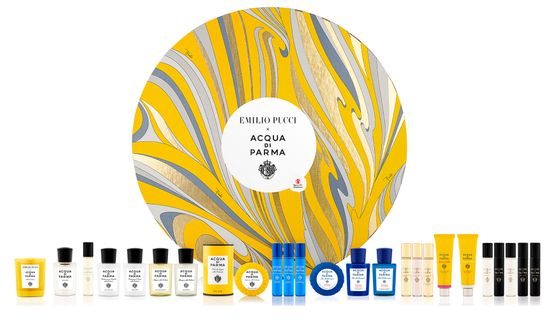 Objet de design exceptionnel, découvrez le calendrier de l'Avent Acqua di Parma x Emilio Pucci : un format XL, un contenu généreux ! 25 fenêtres pour découvrir jour après jour un tourbillon de surprise. 12 produits en taille vente et des formats découverte à emmener partout avec soi..., un format 20ml de la fragrance iconique Colonia, une mini bougie de l’édition limitée Notte di Stelle....