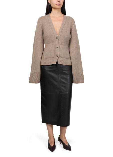 Le cardigan Khaite est un modèle intemporel avec des manches longues évasées et une emmanchure basse pour un style décontracté. Il est doté de bords-côtes et d'une encolure en V, avec une fermeture boutonnée et des poches plaquées pour plus de fonctionnalité. Ses lignes oversize lui confèrent une allure moderne et élégante.
