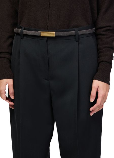 Découvrez la ceinture Empire 15 MM Khaite, confectionnée en cuir velours et dotée d'une bouclerie en métal couleur or. Son fermoir réglable assure un ajustement parfait à la taille. Un accessoire élégant qui sublime aussi bien les tenues décontractées que raffinées.