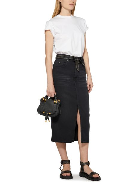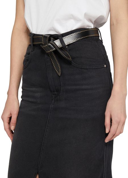 La ceinture à nouer Isabel Marant Lecce est confectionnée en cuir lisse de qualité supérieure. Elle est ornée de détails de clous et de finitions dorées pour un look élégant et sophistiqué. Cette ceinture polyvalente peut être portée sur les hanches ou à la taille pour un ajustement parfait.