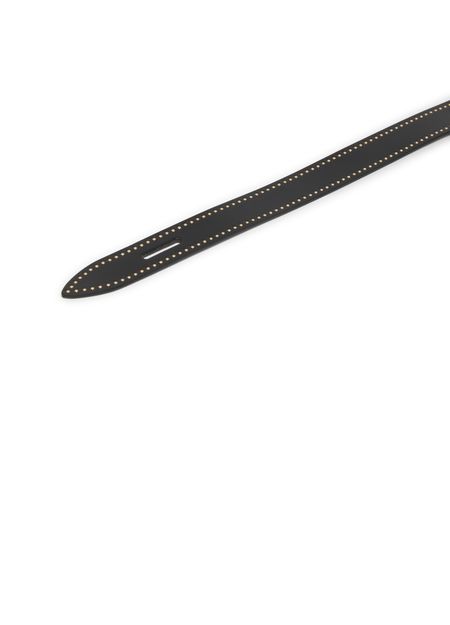 • Description : Ceinture à nouer, cuir lisse, détails de clous, finitions dorées, se porte sur les hanches ou à la taille.