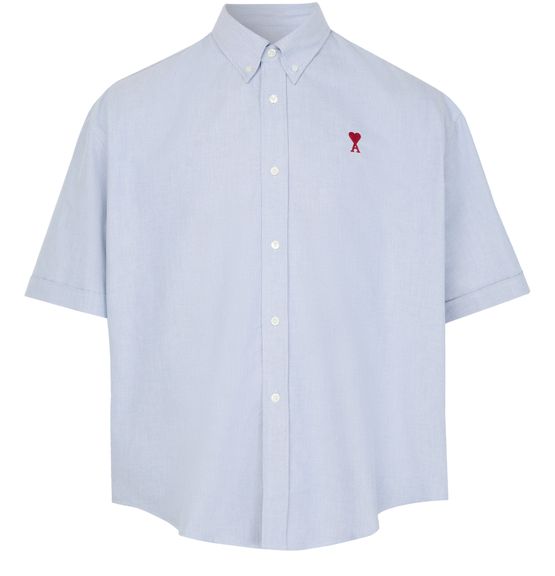 La chemise Ami à manches courtes coupe boxy présente un logo brodé sur la poitrine et une étiquette avec logo à l’arrière. Avec des boutons sur le devant et une fermeture à bouton, elle offre un style moderne et décontracté. Le col américain et les détails brodés ajoutent une touche d'élégance.