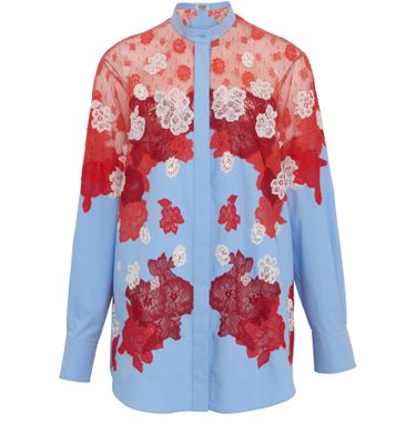 La maison Valentino se réapproprie les modèles classiques avec cette chemise ample à manches longues habillée de fins détails en dentelle pour un look graphique et raffiné.