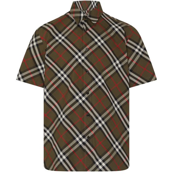 La chemise en coton Check de Burberry se distingue par son imprimé all-over au motif tartan emblématique. Les boutons sur le devant ajoutent une touche classique, tandis que le col chemise et les manches courtes offrent une silhouette décontractée. Le logo appliqué est visible à l'arrière, affirmant l'élégance de cette pièce casual.