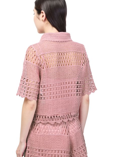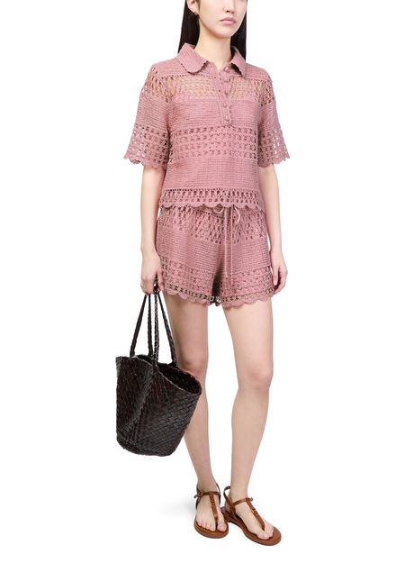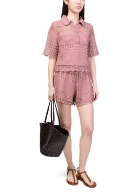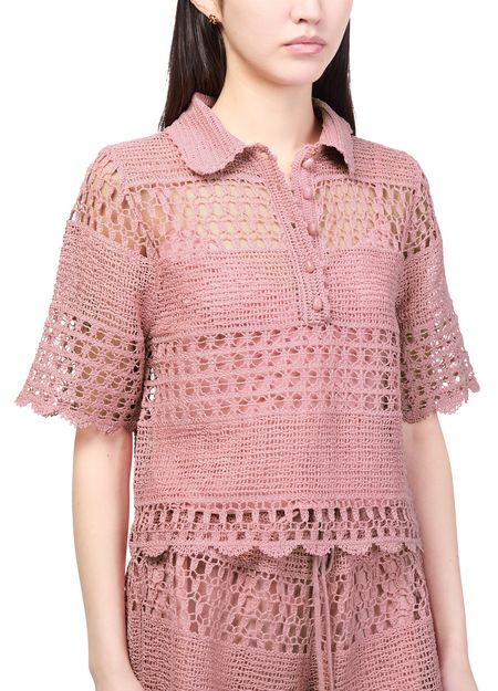 Découvrez la chemise en crochet Wanderlust Sun Zimmermann, confectionnée en maille ajourée pour une allure légère et raffinée. Ses manches courtes et sa fermeture à bouton en font un top polyvalent, parfait pour sublimer vos tenues estivales avec élégance.