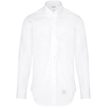 • Description : Chemise manches longues, coupe cintrée, col américain, poignets boutonnés, broderie florale, étiquette avec logo à l'avant, fermeture boutonnée.
