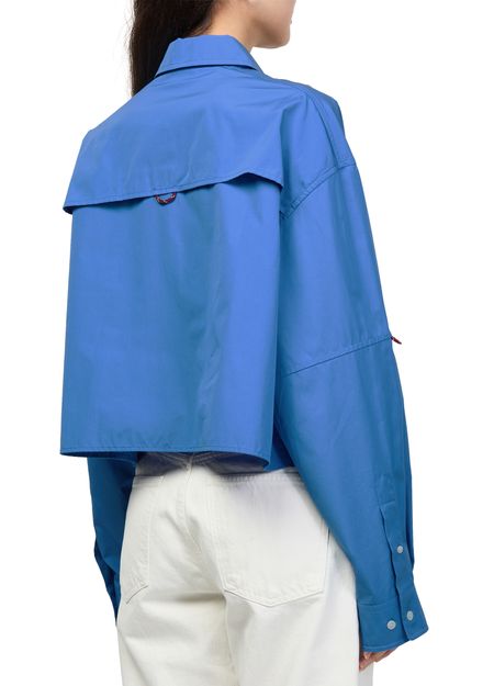 Découvrez la chemise multi-poches de Miu Miu, ornée du logo brodé "Miu Miu" et d'une fermeture à bouton élégante. Les manches longues resserrées et les poches plaquées sur la poitrine offrent une allure soignée, parfaite pour des tenues décontractées ou sophistiquées.