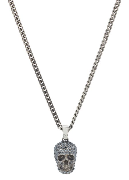 Des cristaux scintillants et une chaîne aux maillons agréablement asymétriques font du collier Pavé Skull une merveille de sophistication aux accents punks signée Alexander McQueen.