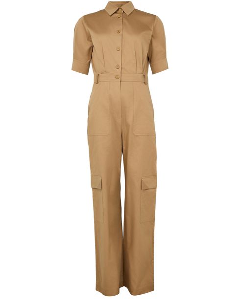 Description : passants pour ceinture, boutons sur le devant, surpiqûre visible, col de chemise, poignets boutonnés, poches latérales, manches courtes, manches resserrées, coupe ample, long.