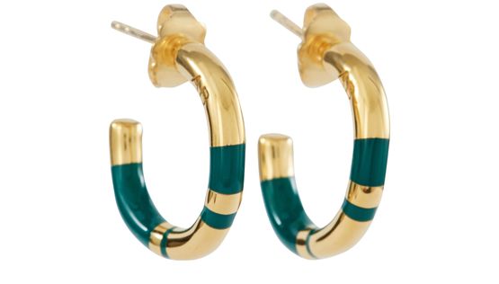 Discrètes, colorées et résolument féminines, les créoles Positano de la marque Aurélie Bidermann mettent en valeur le port de tête et l'élégance naturelle du visage.