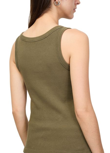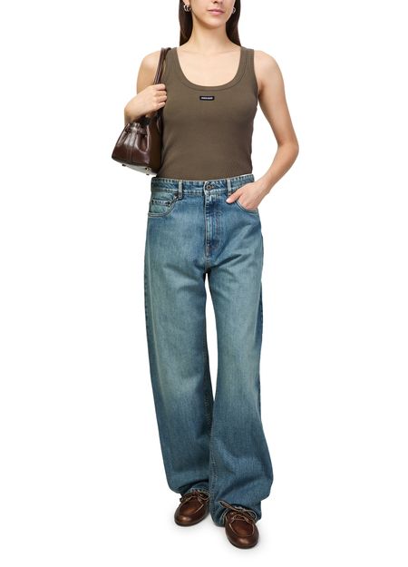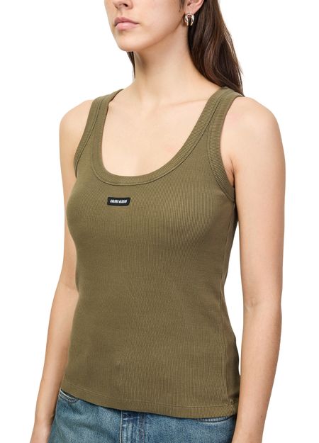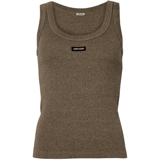 Découvrez le débardeur en coton de Miu Miu, confectionné en bords-côtes avec un col rond élégant. Son logo à l'avant et son étiquette décorative signent une allure contemporaine, idéale à associer à toutes vos tenues pour un style affirmé et polyvalent.