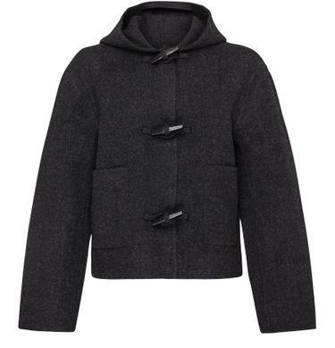 Le Duffle-coat Toteme est un manteau intemporel avec des finitions argentées. Il dispose de boutons sur le devant et d'une étiquette avec le logo à l'arrière. Avec ses manches longues et ses deux poches avant, il est à la fois fonctionnel et élégant.