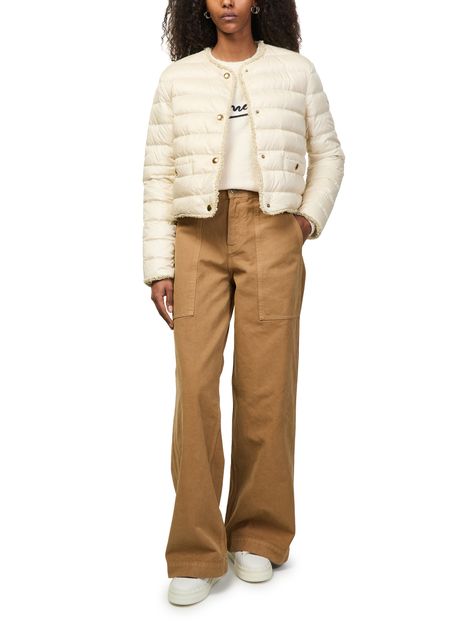 Découvrez la doudoune fleurs de Moncler, une coupe courte sans col dotée de manches longues et d'une fermeture à bouton. Les poches plaquées et les bords surpiqués soulignent son allure contemporaine, tandis que la texture capitonnée offre une touche sophistiquée. Idéale pour toutes les occasions.