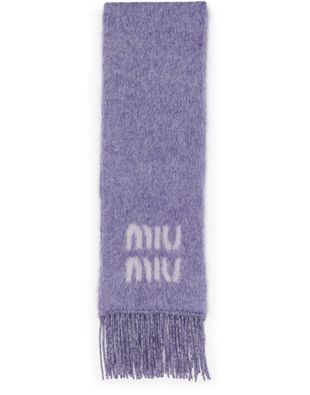 Écharpe en laine et mohair de Miu Miu avec détails franges, logo à l'avant et logo appliqué. Les bords effrangés ajoutent une touche de style décontracté à ce accessoire chic et chaud. Parfait pour compléter n'importe quel look d'hiver avec une touche de sophistication et de modernité.