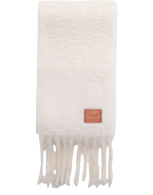 Découvrez l'écharpe en mohair et laine de Loewe, une alliance parfaite de chaleur et d'élégance. Dotée d'un logo embossé pour une touche signature, elle est agrémentée de détails franges qui ajoutent une note ludique à votre tenue.