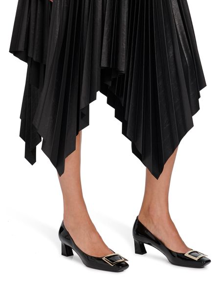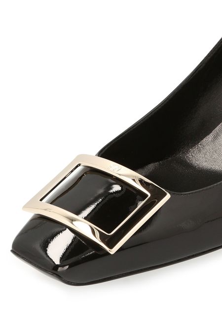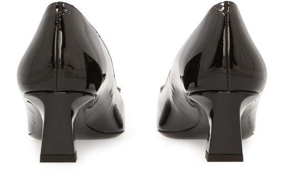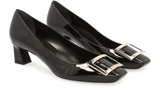 Créateur mythique de souliers, la maison Roger Vivier ne cesse de surprendre comme avec ces escarpins Trompette. Le talon incurvé de 4,5 cm apporte une touche de douceur à ce modèle aux lignes architecturales. La pointe carrée décorée d’une boucle en métal souligne le dynamisme de la femme moderne. Associez-les à une robe claire en coton pour un look casual.