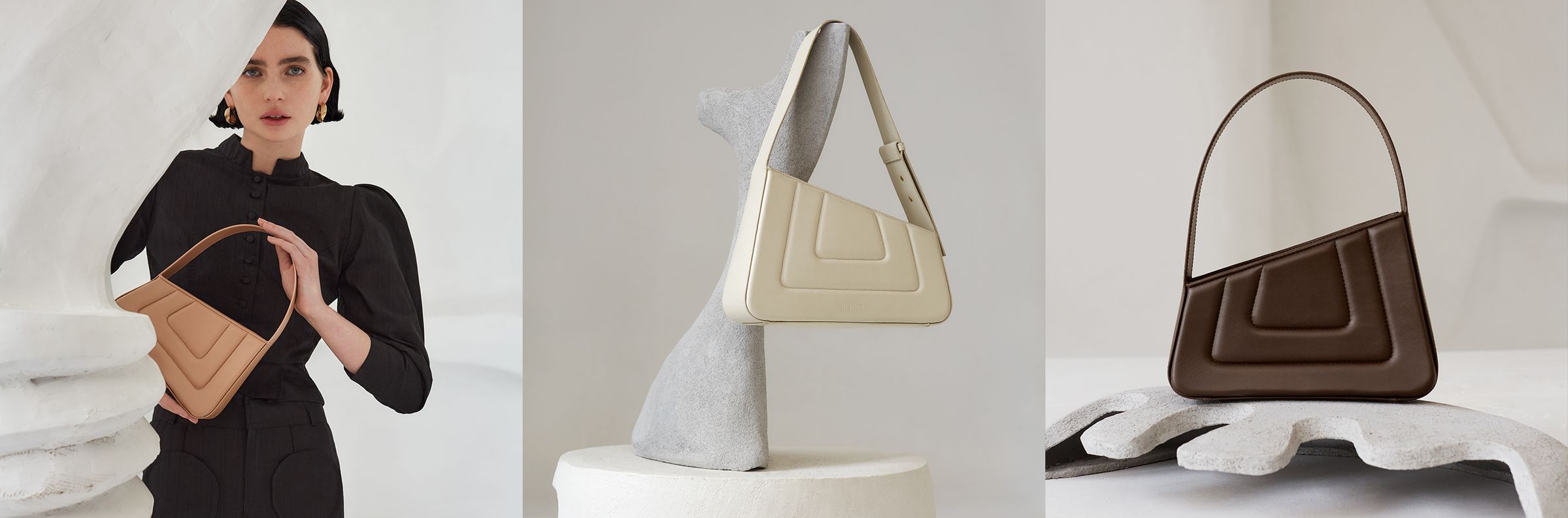 Fondé en 2016 par Géraldine Guyot et Laëtitia Lumbroso, Destree propose une ligne de prêt-à-porter et d’accessoires inspirés par l’art contemporain. Axée dans un premier temps sur l’univers de la chapellerie, la marque explore aussi la maroquinerie à travers des sacs structurés. Le résultat offre des pièces singulières travaillées jusqu'à atteindre l'épure. La vision créatrice du label parisien s’exprime aussi dans une gamme de bijoux uniques. Un collier ou des boucles d’oreilles prennent ici des allures d’œuvre d’art qui complètent une tenue. La garde-robe signée Destree offre une identité forte, celle de vêtements que l'on adopte pour imprimer son style personnel. Le détail de la couleur ou l’attrait pour l’asymétrie s’imposent ainsi dans les créations de la marque. Les femmes sont sensibles à une esthétique graphique qui épouse la silhouette. Une chemise rayée ou un pantalon en laine côtoient dans ce vestiaire inventif jupes, robes et vestes. Soie et popeline de coton subliment des coloris audacieux, le tout agrémenté d’un savoir-faire artisanal européen.