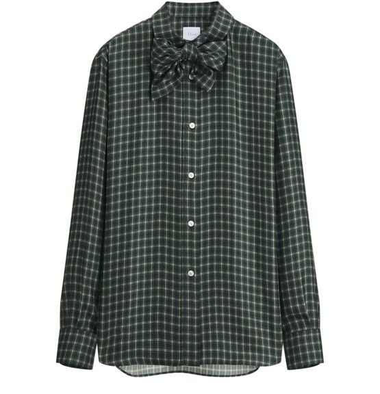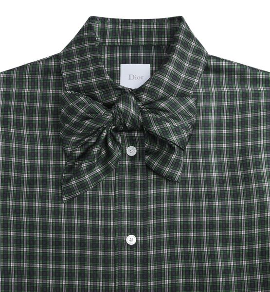 Découvrez la blouse avec nœud papillon amovible de Dior. Ce modèle se distingue par son nœud papillon amovible ton sur ton, sa fermeture à boutons sur le devant et ses poignets boutonnés, le tout sublimé par des boutons en nacre signature CD. L'ourlet arrondi ajoute une touche raffinée.