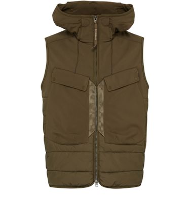 Le gilet C.P. Shell-R Mixed Goggle de C.P. Company allie fonctionnalité et style. Doté d'une capuche pratique, ce modèle sans manches arbore un col ajustable avec cordon. Ses poches avant et à rabat offrent un espace de rangement astucieux, idéal pour les aventuriers modernes à la recherche d'élégance décontractée.