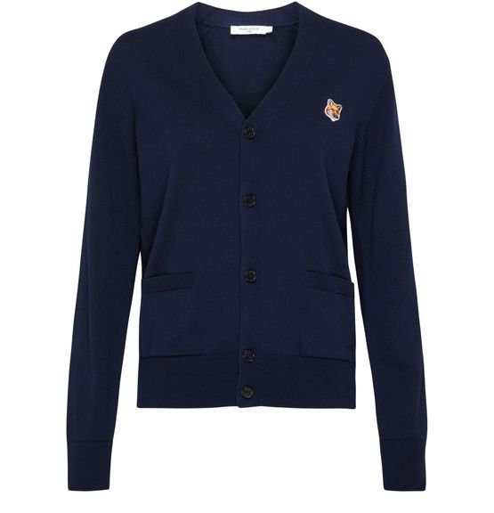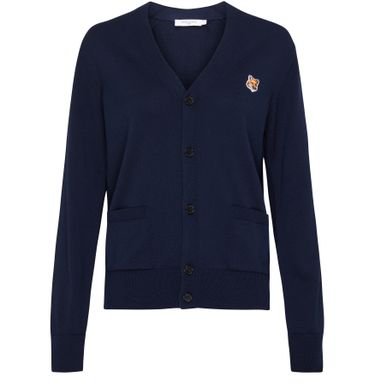 Description : Gilet manches longues, coupe droite, bords-côtes, col en V, poches plaquées à l'avant, logo sur la poitrine, logo appliqué, fermeture boutonnée.