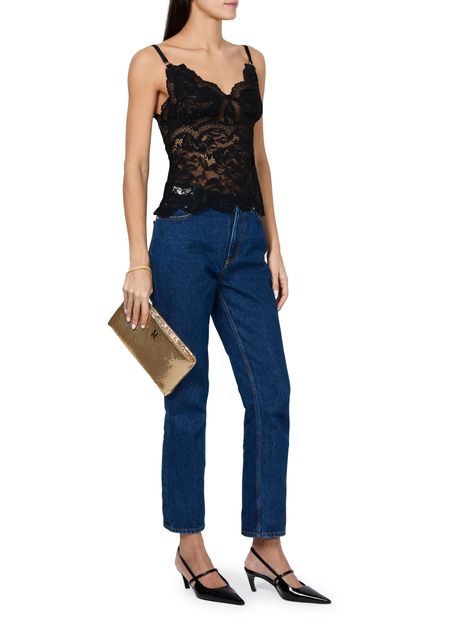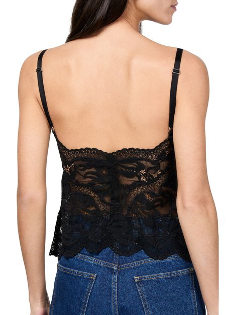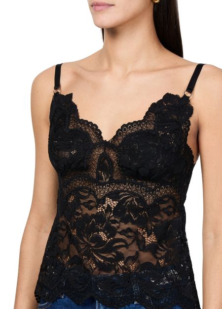 • Description : bords festonnés, détails dentelle, bretelles fines/spaghetti, surpiqûre visible, classique, débardeurs et caracos.