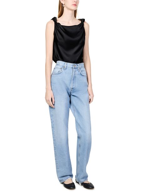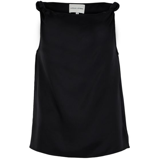Le haut Remy drapé de Loulou de Saison incarne l'élégance classique avec son encolure bateau et ses détails de surpiqûre visible. Sans manches, il offre une silhouette fluide et raffinée, parfaite pour toutes les occasions. Ce chemisier intemporel se marie aisément avec un jean ou une jupe, ajoutant une touche de sophistication à votre garde-robe.