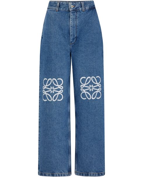 Le jean baggy Anagram est un modèle à cinq poches doté de passants pour ceinture. Il est agrémenté du logo de la Maison Loewe à l'avant et au dos.