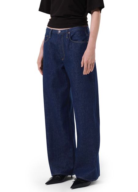 Craquez pour le Jean Moderne Coupe Large d'Agolde, doté d'une fermeture à glissière avec bouton et de boutons décorés. Avec sa longueur cheville et sa surpiqûre visible, ce jean offre un mélange chic de style et de fonctionnalité. Le style cinq poches et les passants pour ceinture augmentent sa polyvalence, idéal pour des occasions décontractées et formelles.
