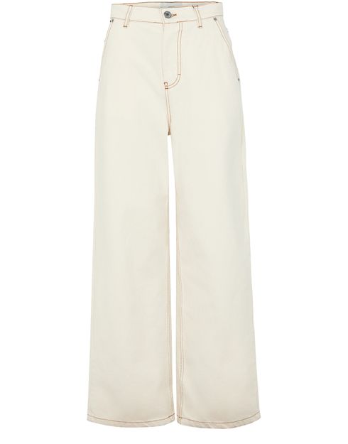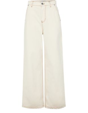 Description : style cinq poches, fermeture bouton et à glissière dissimulée, denim, surpiqûre contrastée, étiquette en cuir à l’arrière avec logo, coupe large, passants pour ceinture, modèle taille basse, longueur cheville.