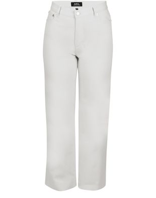 Avec une ligne raccourcie qui respire l'été, cette nouvelle version du jean New Sailor d'A.P.C. flatte la silhouette, grâce à une taille haute et un bas légèrement évasé.