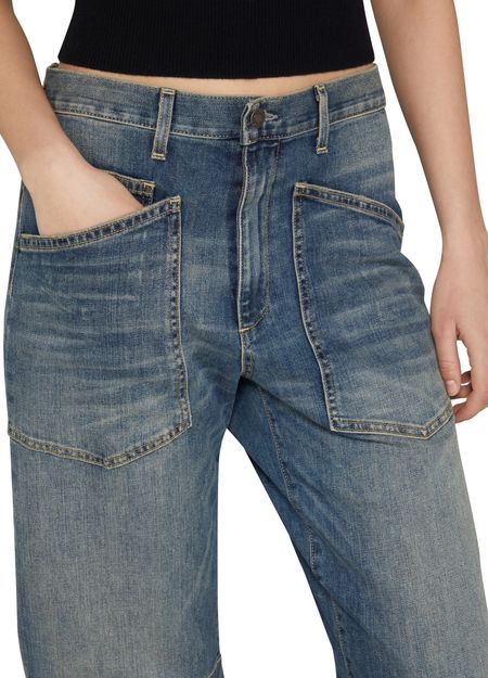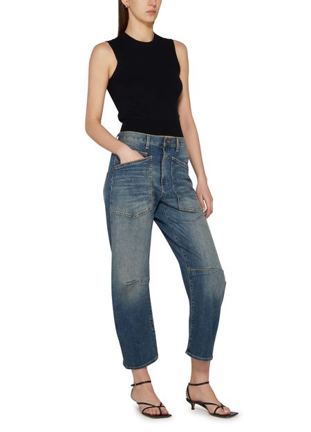 • Description : étiquette avec logo à l’arrière, longueur cheville, fermeture bouton et à glissière dissimulée, style cinq poches.
